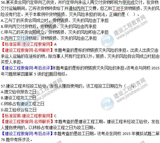【建設(shè)工程教育網(wǎng)-考后點(diǎn)評(píng)】本題考查的是民事訴訟的審判和執(zhí)行程序。該考點(diǎn)與網(wǎng)校2015年模擬試題一第60題相似。