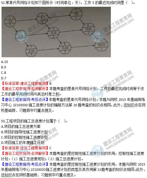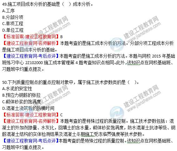 【老師解析】2015年二建管理試題及答案(49-54題)