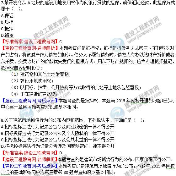 【老師解析】2015年二級建造師《建設工程法規(guī)及相關知識》試題及答案(7-12題)