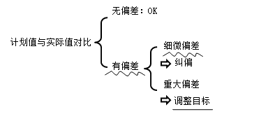 ?。?)通過項(xiàng)目目標(biāo)的計(jì)劃值和實(shí)際值的比較,如有偏差,則采取糾偏措施進(jìn)行糾偏。