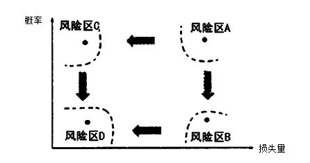 若某事件經過風險評估,它處于風險區(qū)A,則應采取措施,降低其概率,以使它移位至風險區(qū)B;或采取措施降低其損失量,以使它移位至風險區(qū)C.風險區(qū)B和C的事件則應采取措施,使其移位至風險區(qū)D.