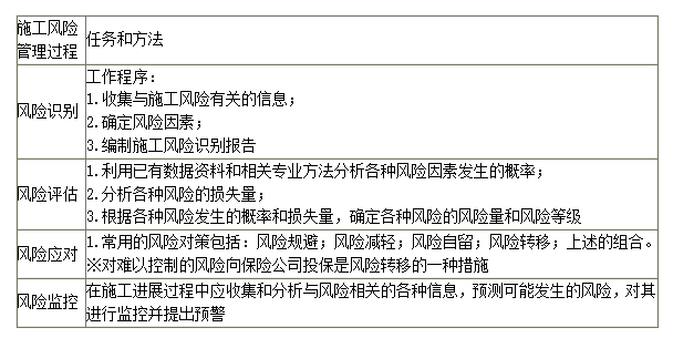 考點(diǎn):施工風(fēng)險(xiǎn)管理的任務(wù)和方法