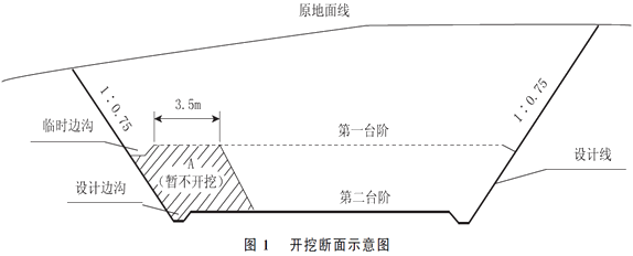 4.橫向挖掘法。暫不開挖土體A的主要作用是為了保證第一臺階機械開挖的工作面。