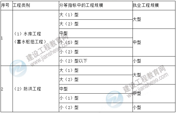 農(nóng)村飲水工程、河湖整治工程、水土保持工程、環(huán)境保護工程執(zhí)業(yè)工程規(guī)模標準根據(jù)單項合同額確定:大型:≥3000萬元;中型:3000~200萬元;小型:<200萬元。