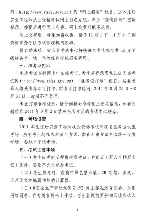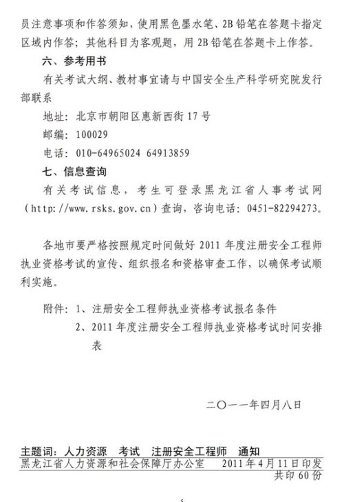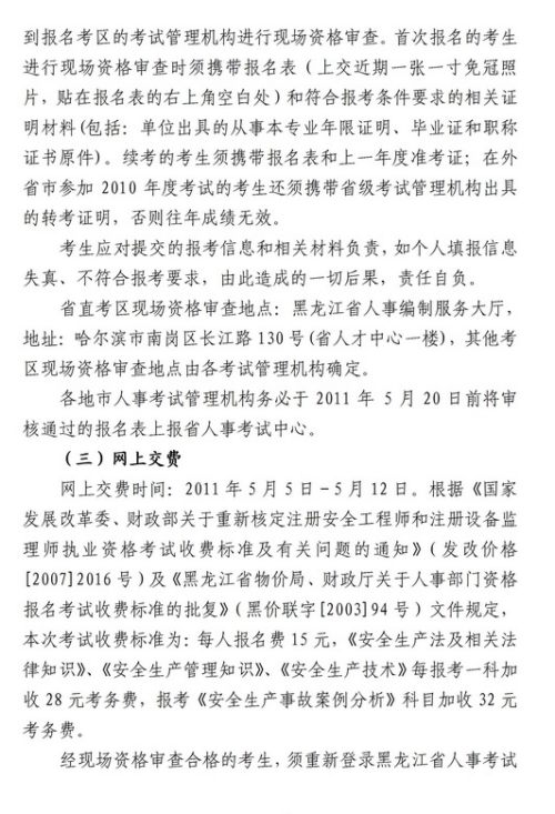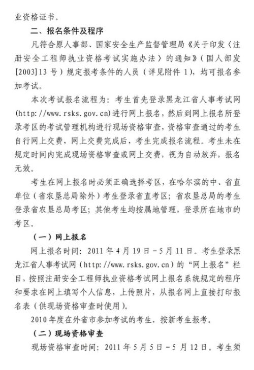 2011年黑龍江省安全工程師報名時間為4月19日-5月11日
