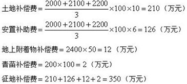 6、某建設項目,需要征用耕地100畝,該耕地被征用前三年平均每畝年產(chǎn)值分別為2000元、2100元和2200元,土地補償費標準為前三年平均年產(chǎn)值的10倍;被征用單位人均占有耕地1畝,每個需要安置的農(nóng)業(yè)人口的安置補助費標準為該耕地被征用前三年平均年產(chǎn)值的6倍;地上附著物共有樹木2400棵,補償標準為50元/棵,青苗補償標準為200元/畝,則該征地補償費為( ?。?br /> A.336