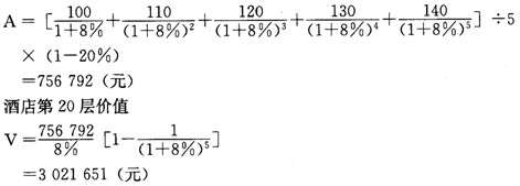 按租約規(guī)定,第20層的年租金收入在尚余的5年租期內(nèi)分別為100萬元、110萬元、120萬元、130萬元、140萬元,租賃稅費占租金收入的20%。