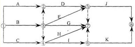 答案解析:本題考查的是雙代號網(wǎng)絡(luò)圖的繪圖規(guī)則。有⑦⑧兩個終點(diǎn)節(jié)點(diǎn)。虛工作③②箭頭的節(jié)點(diǎn)編號數(shù)字小于箭尾節(jié)點(diǎn)編號的數(shù)字。參見教材P214、215。