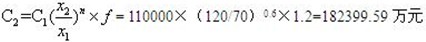 7、已知建設(shè)某生產(chǎn)70萬噸化工裝置的投資額為110000萬元,現(xiàn)擬建生產(chǎn)120萬噸的同類裝置,工程條件與上述裝置類似。生產(chǎn)能力指數(shù)為0.6,價格調(diào)整為1.2,則擬建裝置的投資額估算為( ?。┤f元。