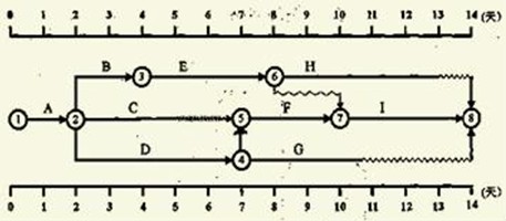 4、下圖所示的雙代號(hào)時(shí)標(biāo)網(wǎng)絡(luò)計(jì)劃中,所提供的正確信息有( )。
