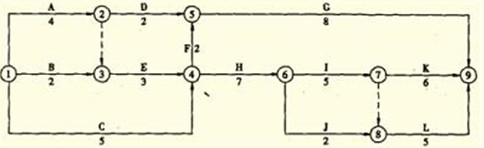施工過程H、I、K進行流水施工以后,原關鍵線路A→E→H→I→K的總持續(xù)時間為(4+3+2+11)月=20關鍵線路發(fā)生變化,新的關鍵線路有兩條,即線路A→E→H→J→L和線路A→E→H→I→L,計算工期都等于23個月(分別4+3+2+4+5+5=23;4+3+2+7+2+5=23),滿足合同工期要求。