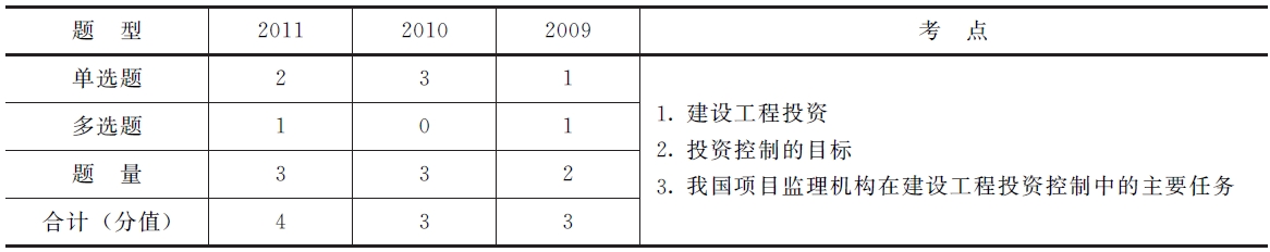 在歷年考試中,第一章所占分值較小。考試重點(diǎn)集中在建設(shè)工程總投資、靜態(tài)投資與動態(tài)投資的組成,這部分內(nèi)容每年必考;投資控制的重點(diǎn)及我國項(xiàng)目監(jiān)理機(jī)構(gòu)在工程建設(shè)各階段投資控制的主要任務(wù)也是??嫉膬?nèi)容。此外,還要注意投資控制中措施方面的內(nèi)容。