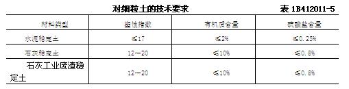 5. 無(wú)機(jī)結(jié)合料穩(wěn)定細(xì)粒土?xí)r,細(xì)粒土應(yīng)符合表1B412011-5的要求。