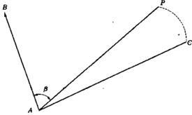 β —— 未知邊AP與已知邊AB的水平夾角,當(dāng)未知邊AP在已知邊AB的右側(cè)時(shí),取“—β”。