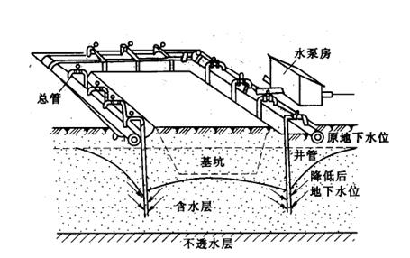圖17.1管井降水布置示意圖