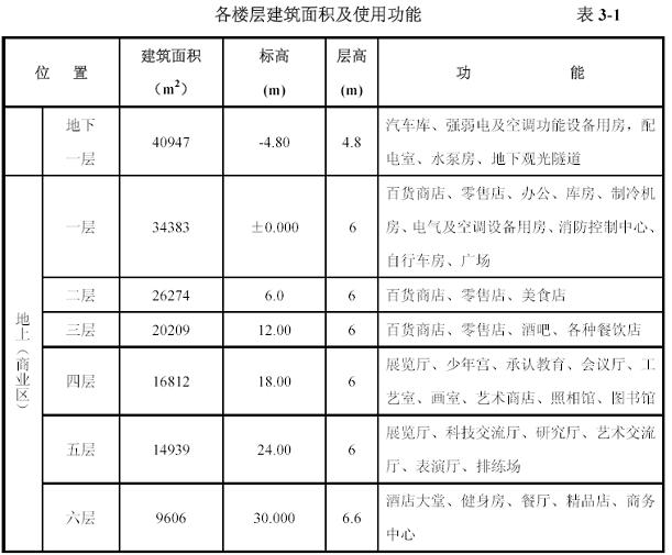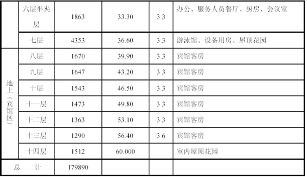 某文化廣場位于天津開發(fā)區(qū)某街以南,某西路以東地塊內(nèi),四面環(huán)路北起某大街,西至某西道,南鄰某路,東至某路,在地塊南側連接輕軌東站,地基現(xiàn)狀為預留空地。本工程為酒店、商場、寫字樓、美食、娛樂為一體綜合性高層民用建筑,建筑物南北向324m,東西向114m,主塔樓14 層,基層為7 層,夾層1層,地下一層。建筑面積地上138943m? ,總建筑面積179890m? .剖面層高:地下一層4.8m,一層~五層6.0m,六樓半夾層3.3m,六層6.6m,七層~十二層3.3m,十三層3.6m,十四層坡頂(室內(nèi)屋頂花園)。建筑物總高度87m,(幕墻物架高度109m)。