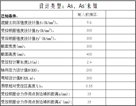 軸心承載力驗(yàn)算表格包括已知條件和設(shè)計(jì)步驟,您只需要輸入數(shù)據(jù),就可得出相應(yīng)的結(jié)論,供您參考。