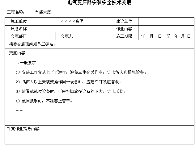 詳情請下載附件電氣變壓器安裝安全技術(shù)交底