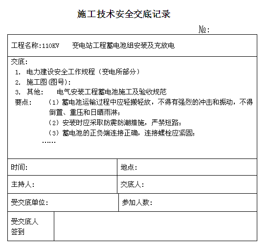 詳情請下載附件蓄電池組安裝 施工技術安全交底記錄