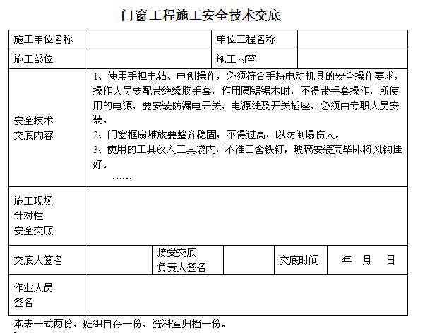 詳情請(qǐng)下載附件門窗工程施工安全技術(shù)交底