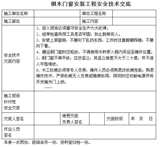 詳情請下載附件鋼木門窗安裝工程安全技術(shù)交底