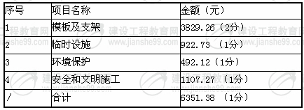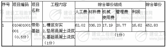 。1)“工程內(nèi)容”和“單位”兩項(xiàng)合并得0.5分,錯一處即不得分。