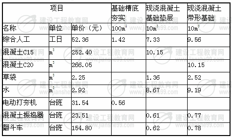 3.依據(jù)提供的基礎(chǔ)定額數(shù)據(jù),計(jì)算混凝土帶形基礎(chǔ)的分部分項(xiàng)工程量清單綜合單價,填入答題紙表6. Ⅰ.3“分部分項(xiàng)工程量清單綜合單價分析表”,并列出計(jì)算過程。建|設(shè)工 程教|育網(wǎng)