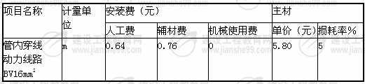 項(xiàng)目名稱:電氣配線,管內(nèi)穿線BV16mm2(0.5分),綜合單價:10.62元(2.5分)