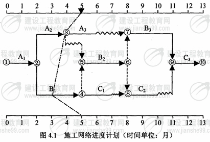 圖4.1 施工網(wǎng)絡(luò)進(jìn)度計(jì)劃(時間單位:月)
