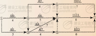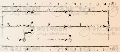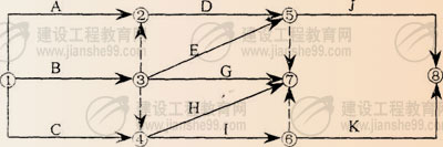 【解析】根據(jù)選項,首先按節(jié)點(diǎn)編號逐個節(jié)點(diǎn)進(jìn)行,即可找的有兩個終點(diǎn)節(jié)點(diǎn)⑦和⑧;箭頭節(jié)點(diǎn)編號②小于箭未節(jié)點(diǎn)編號③,即為節(jié)點(diǎn)編號有誤;其它選項均無。所以選擇BD兩項。