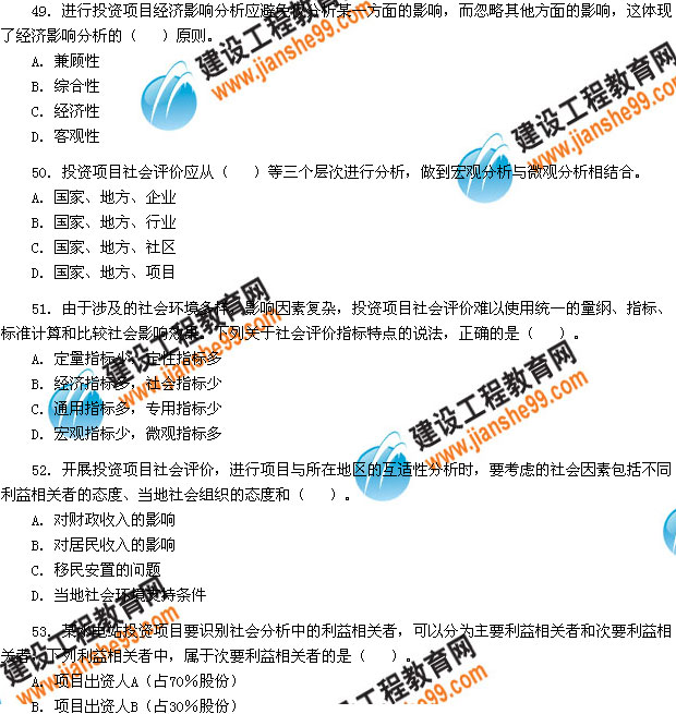93.投資項目社會評價指標(biāo)應(yīng)根據(jù)項目的具體情況選取,但無論采用何種指標(biāo),這些指標(biāo)都具有一些共同的特征,即能反映( ?。?br /> A.弱勢群體社會狀況