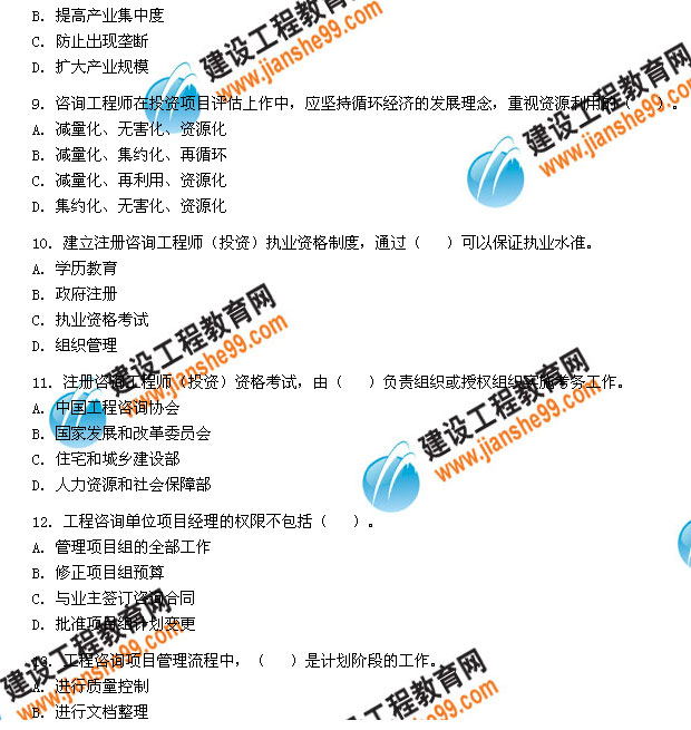2009年全國注冊咨詢工程師(投資)執(zhí)業(yè)資格考試