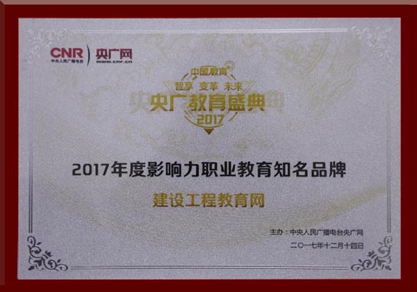 建設工程教育網(wǎng)榮獲“2017年度影響力職業(yè)教育知名品牌”稱號