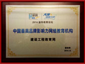 建設工程教育網(wǎng)榮獲“2014中國最具品牌影響力網(wǎng)絡教育機構”稱號