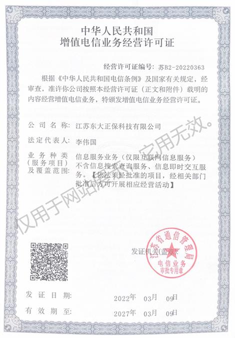江蘇省通信管理局頒發(fā)的中華人民共和國(guó)增值電信業(yè)務(wù)經(jīng)營(yíng)許可證,蘇B2-20220363