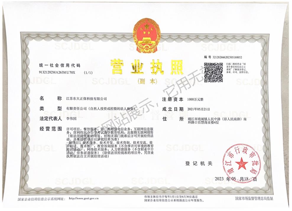 公司是合法經(jīng)營(yíng)的北京市高新技術(shù)企業(yè),成立至今已經(jīng)取得了各種資質(zhì)證書(shū),包括教育部頒發(fā)的“關(guān)于同意北京東大正??萍加邢薰鹃_(kāi)辦現(xiàn)代遠(yuǎn)程職業(yè)教育與培訓(xùn)的復(fù)函”,北京市通信管理局頒發(fā)的“中華人民共和國(guó)增值電信業(yè)務(wù)經(jīng)營(yíng)許可證”,“關(guān)于同意北京東大正??萍加邢薰窘?jīng)營(yíng)因特網(wǎng)信息服務(wù)業(yè)務(wù)的批復(fù)”,“關(guān)于同意北京東大正保科技有限公司開(kāi)設(shè)電子公告服務(wù)欄目的批復(fù)”和中華人民共和國(guó)文化部頒發(fā)的“網(wǎng)絡(luò)文化經(jīng)營(yíng)許可證”,北京市工商行政管理局紅盾315網(wǎng)站的經(jīng)營(yíng)性網(wǎng)站備案電子證書(shū)等等…