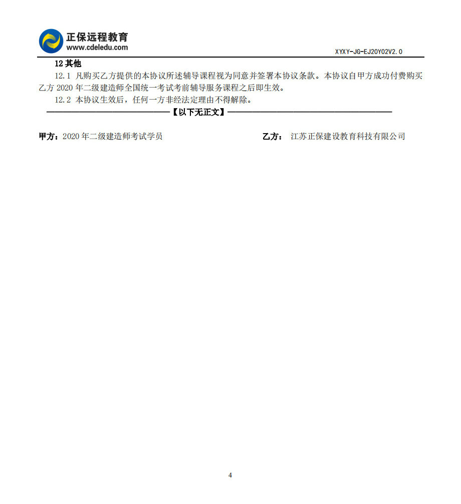 2020年二級(jí)建造師高效實(shí)驗(yàn)班協(xié)議書(shū)