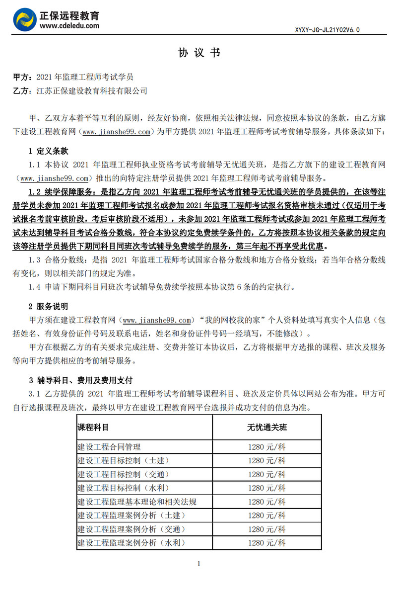 2021年監(jiān)理工程師協(xié)議書
