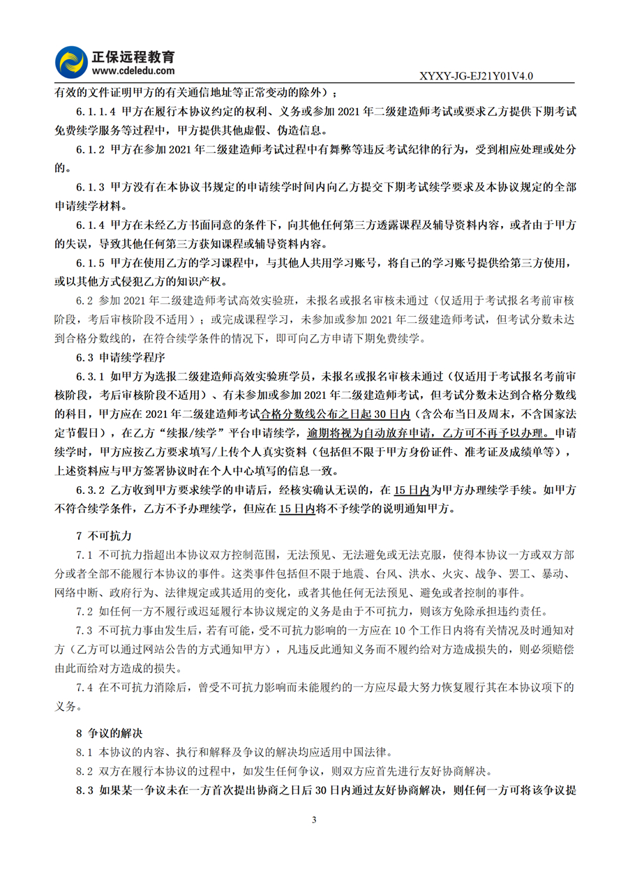 2021年二級建造師高效實驗班協議書