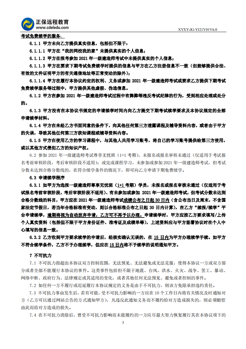 2021年一級建造師尊享無憂班續(xù)學協(xié)議書