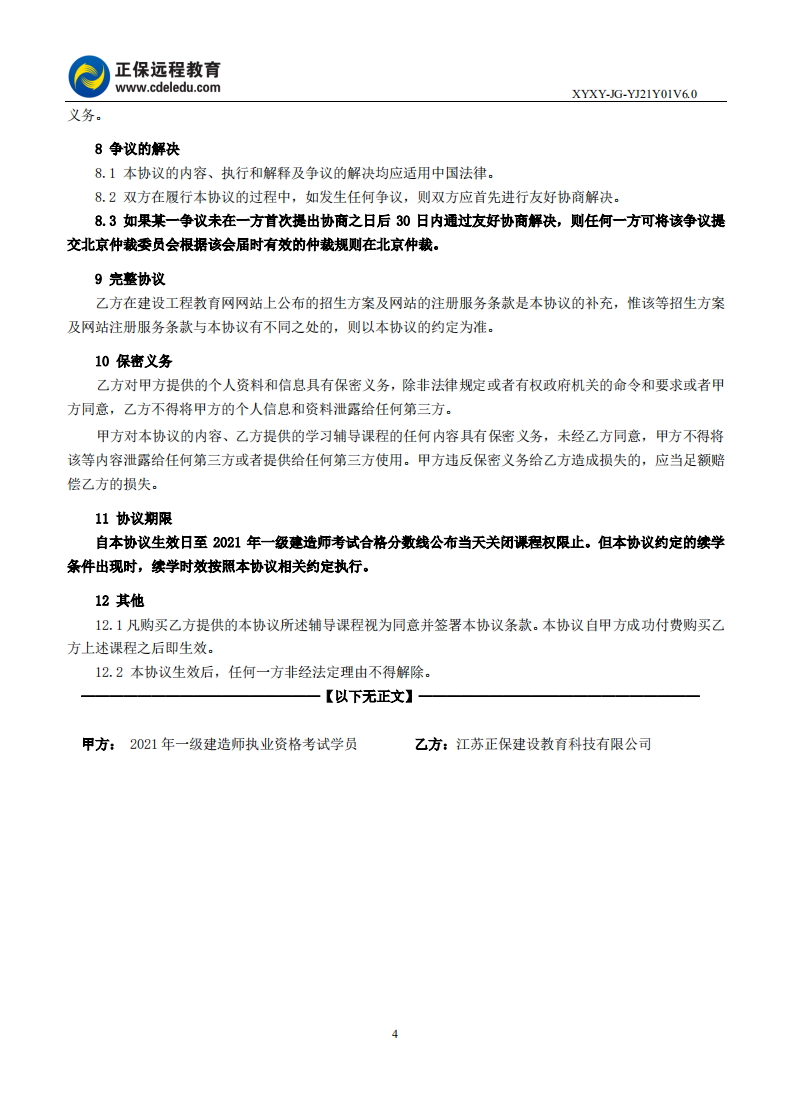 2021年一級(jí)建造師尊享無(wú)憂班續(xù)學(xué)協(xié)議書(shū)