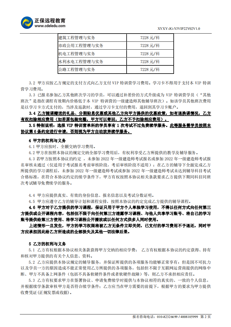 2022年一級(jí)建造師VIP特訓(xùn)營(單科)協(xié)議書