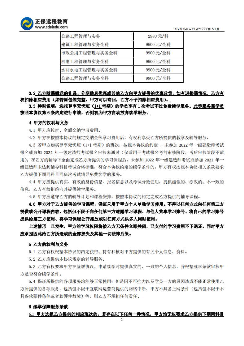 2022年一級建造師尊享無憂班續(xù)學協(xié)議書