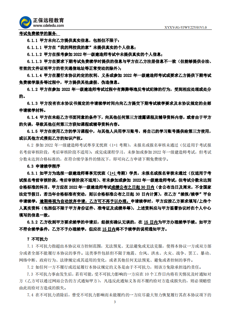 2022年一級(jí)建造師尊享無憂班續(xù)學(xué)協(xié)議書