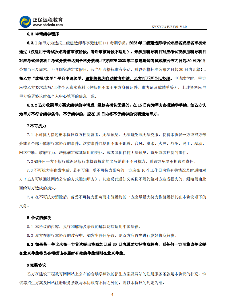 2023年二級(jí)建造師尊享無憂班1+1考期協(xié)議書