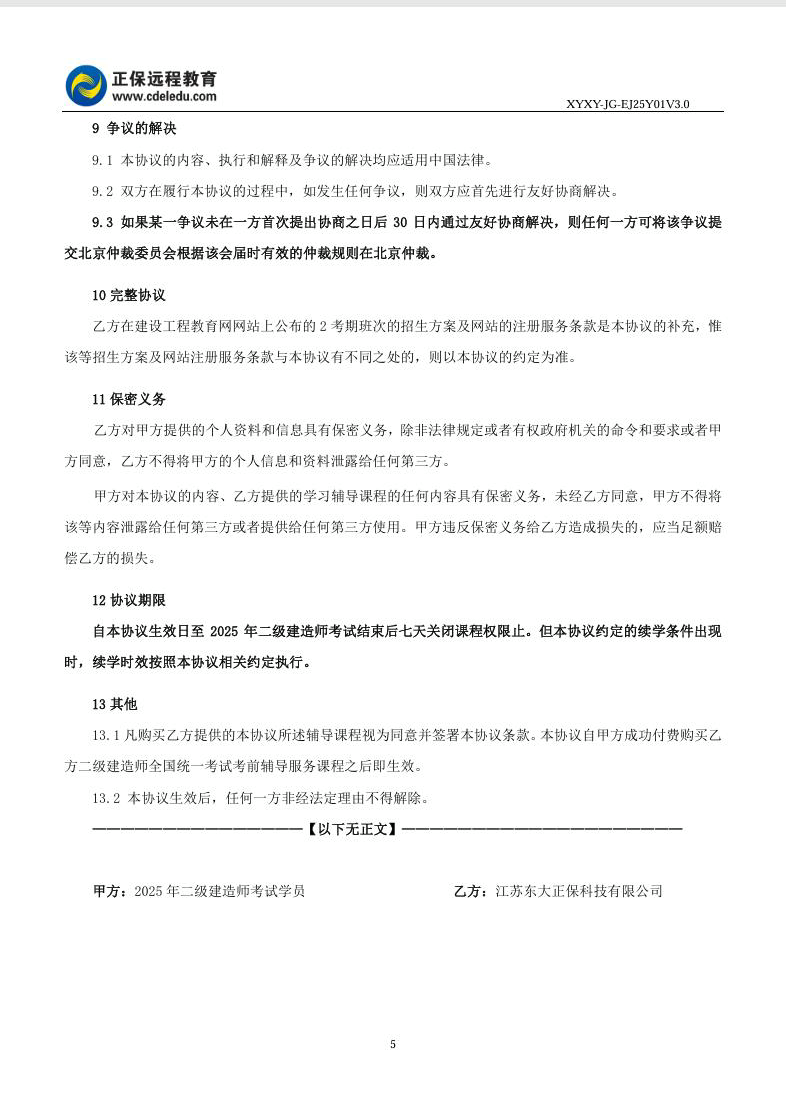 2025年二級建造師高效實驗班(2考期)協(xié)議書