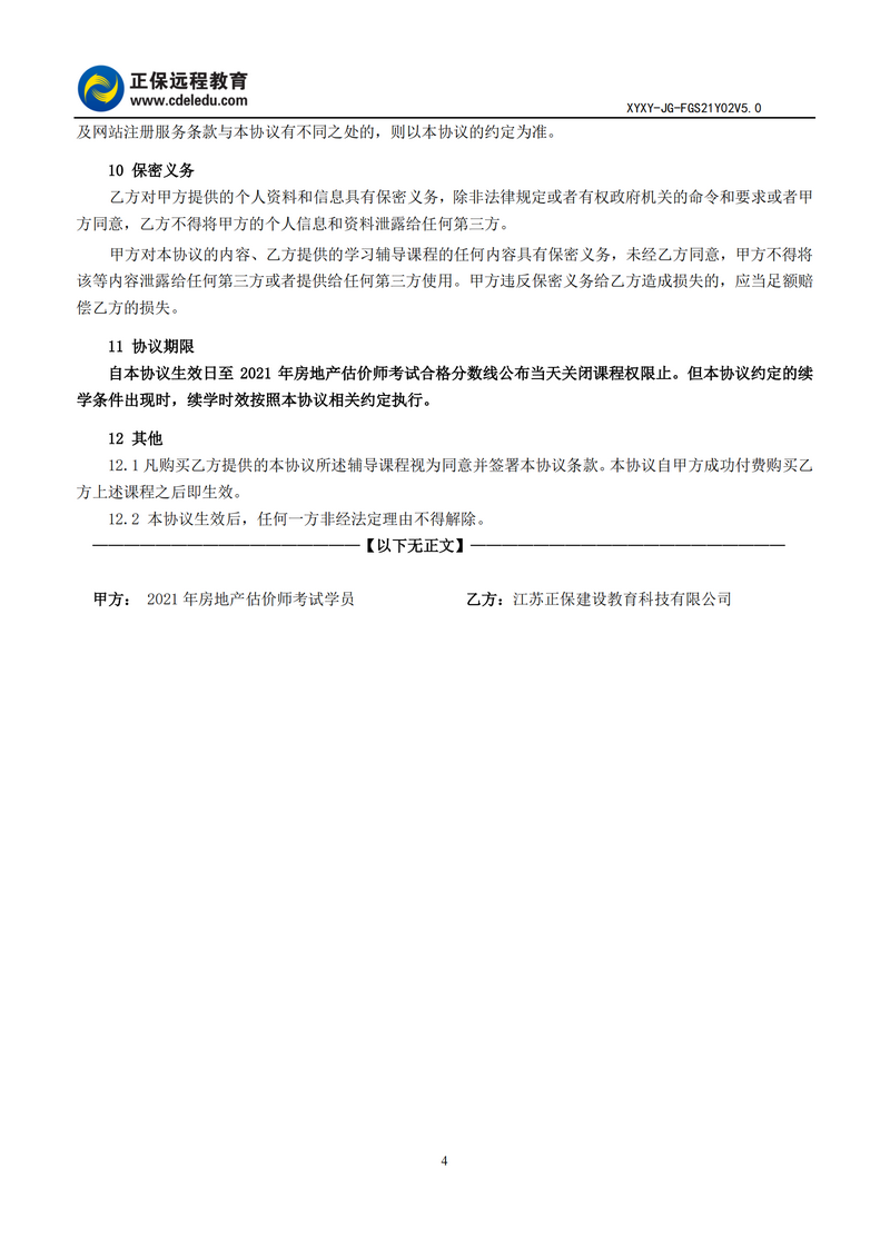 2021年房地產(chǎn)估價師尊享無憂班協(xié)議書
