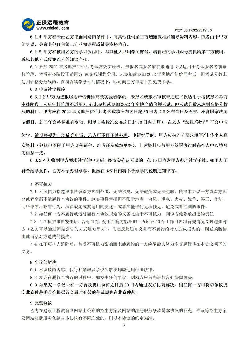 2022年房地產(chǎn)估價師高效實驗班協(xié)議書