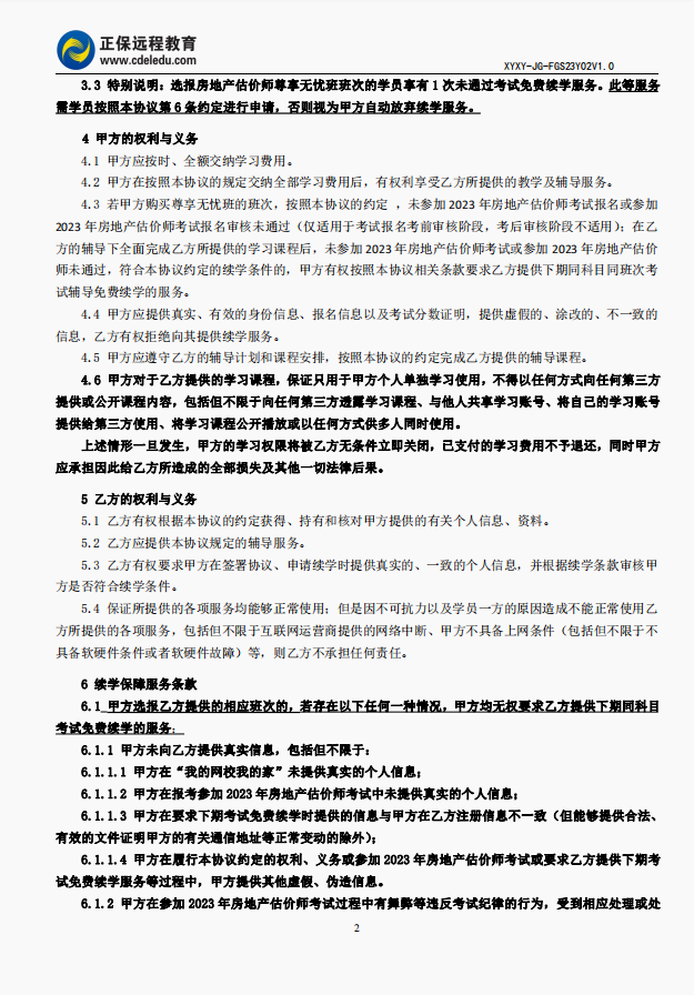 2023年房地產(chǎn)估價師尊享無憂班協(xié)議書