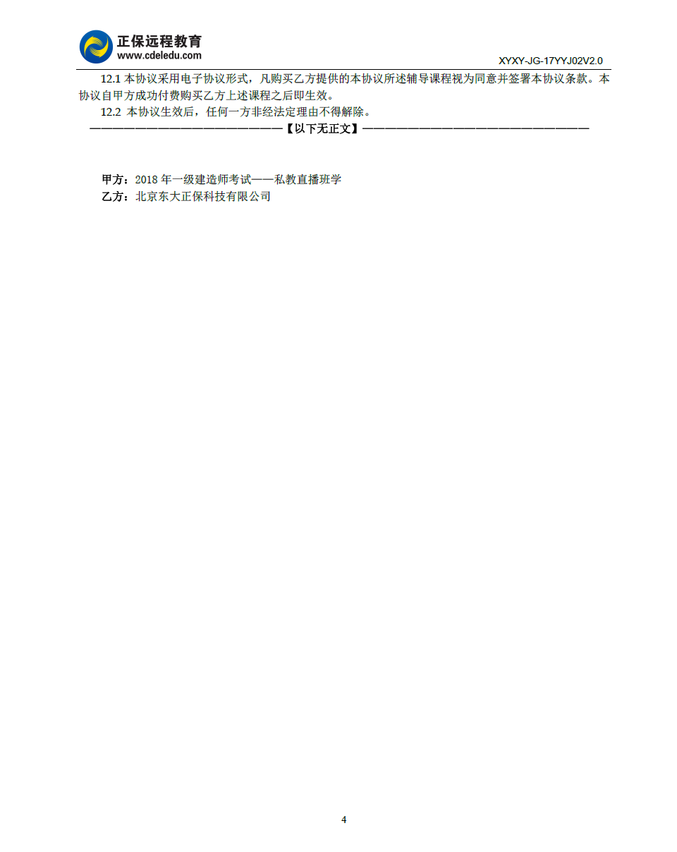 一級(jí)建造師私教直播班協(xié)議書